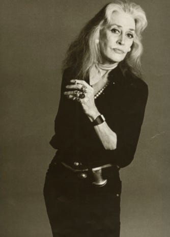 Once at a dinner in San Miguel de Allende I was introduced to a tall, silver-haired woman in black. She was chain-smoking cheap, unfiltered Mexican Faros, huge rings on her fingers. She introduced herself as Bridget, her sepulchral voice emerging from a hollowed face with a thousand lines.
